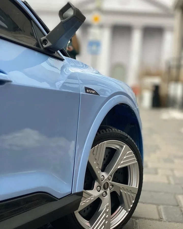 Електромобіль Audi e-tron Sportback має обтічні форми та елегантні фари, які до того ж яскраво світяться у темряві