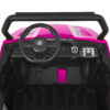 Має двомісне сидіння, завдяки чому на ньому одночасно зможуть їздити двоє дітей, сидіння виконане з екошкіри, діток можна пристебнути ремінцем безпеки, колеса біля джипа зроблені з м’якого EVA, ззаду є амортизатори