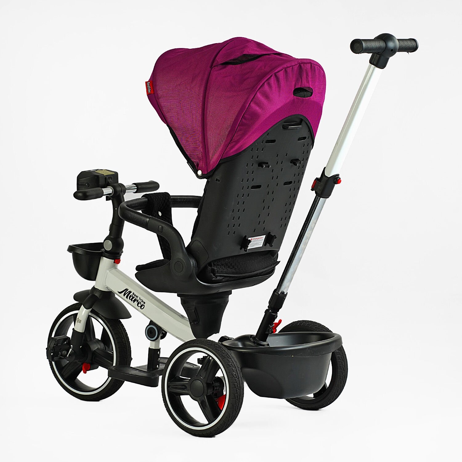 Велосипед Marco з поворотним сидінням, складне кермо, колеса з прогумованим PU, кошик, телескопічна ручка, фара музична