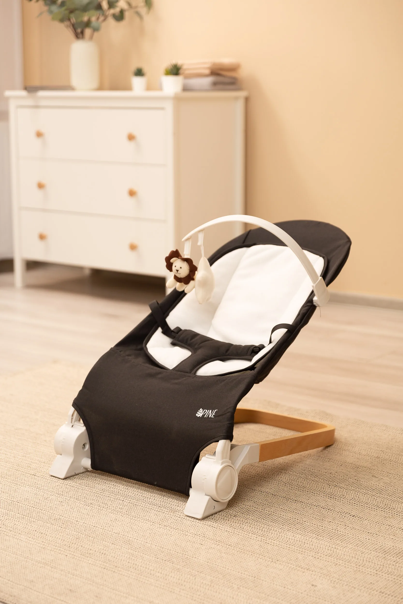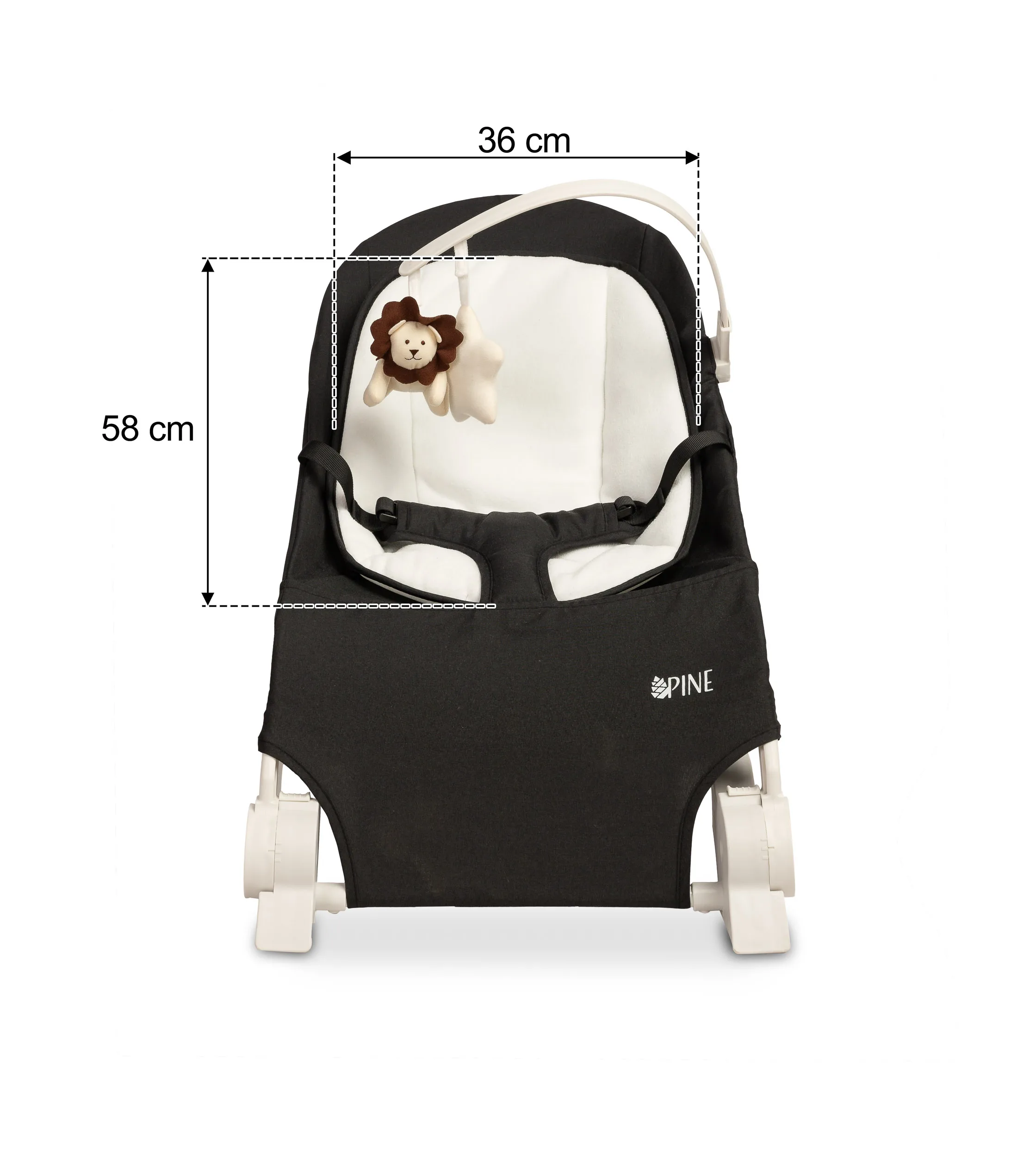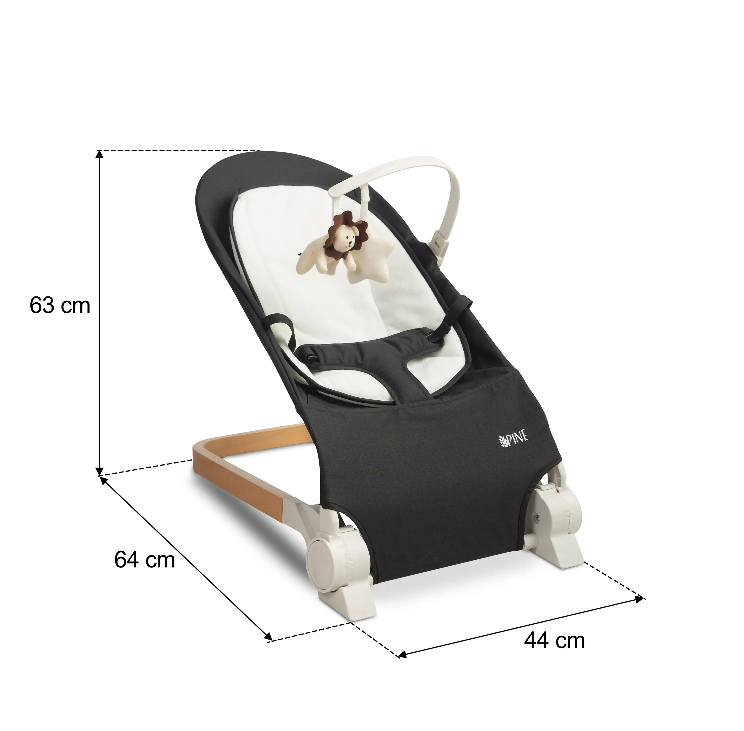– підвищена безпека – дбаючи про безпеку найменших користувачів, PINE оснащений ременями безпеки, які запобігають випаданню малюка з шезлонга;