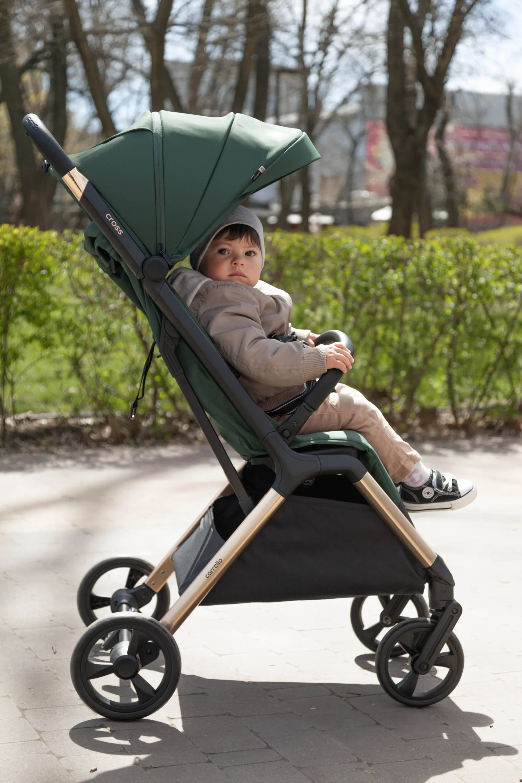 Прогулянкова коляска Cross від ТМ Carrello з автоматичним складанням і витонченою геометрією рами, призначена для дітей віком від 6 місяців