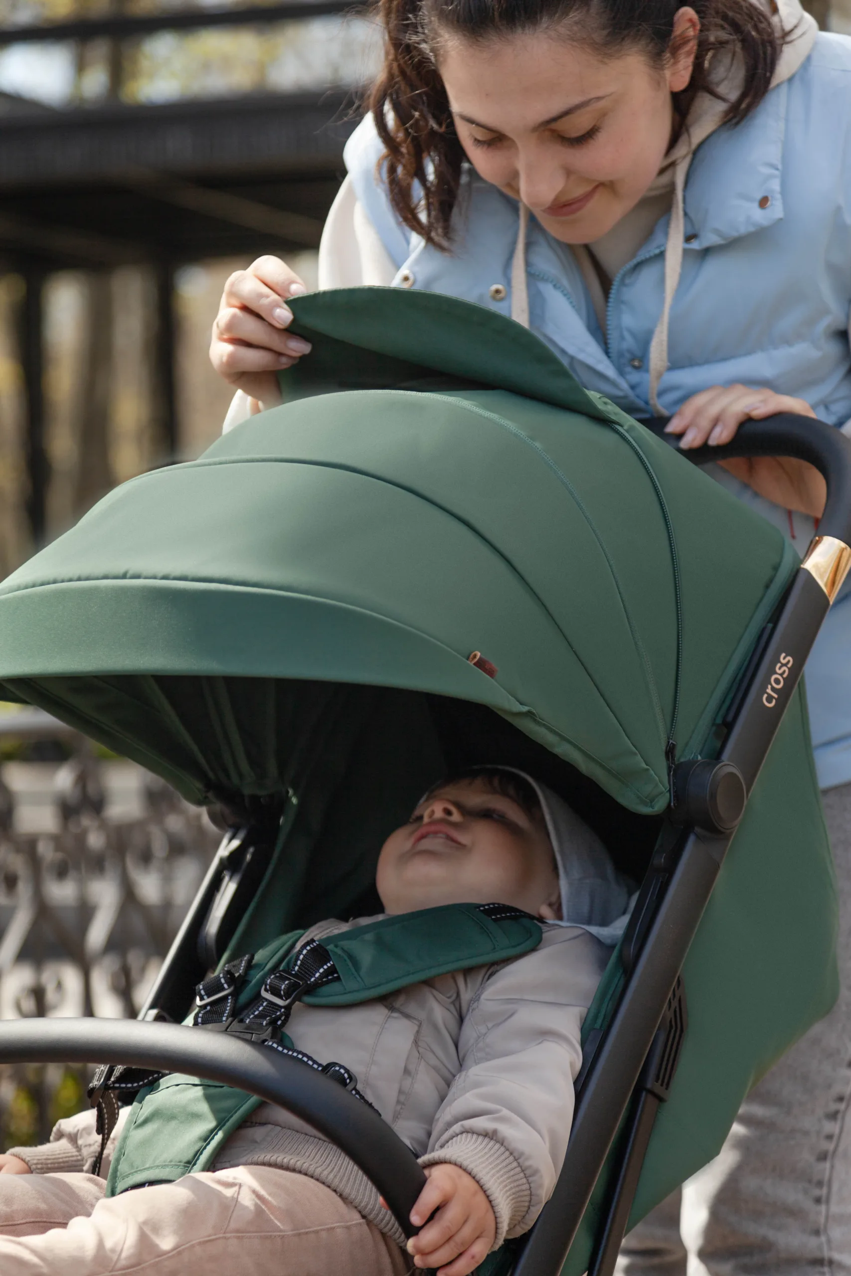 ✔️Капюшон і утеплене укриття для ніжок захистять дитину від негоди