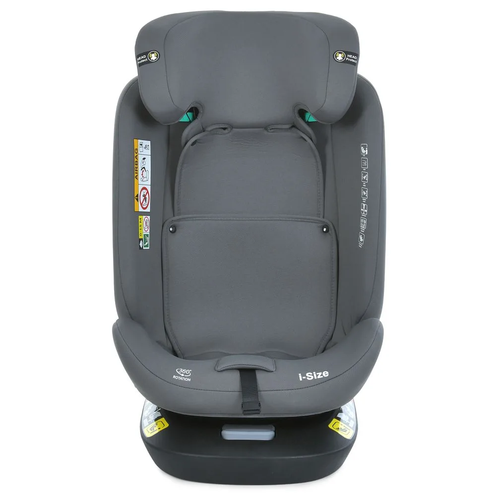 Стандарт безпеки i-SIZE R129, фаза 1,2 (відповідає групі 0+I, II, III), на зріст 40-150 см, є isofix, Top Tether, поворот на 360 градусів