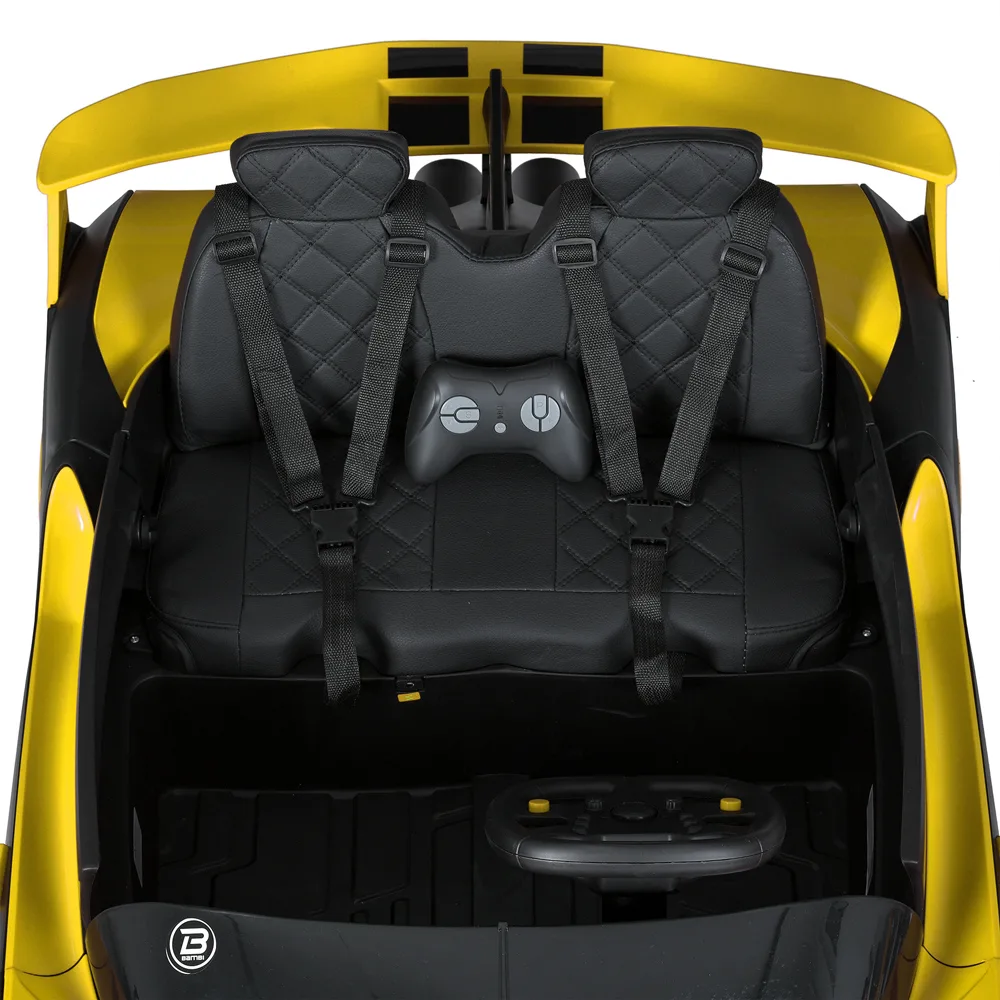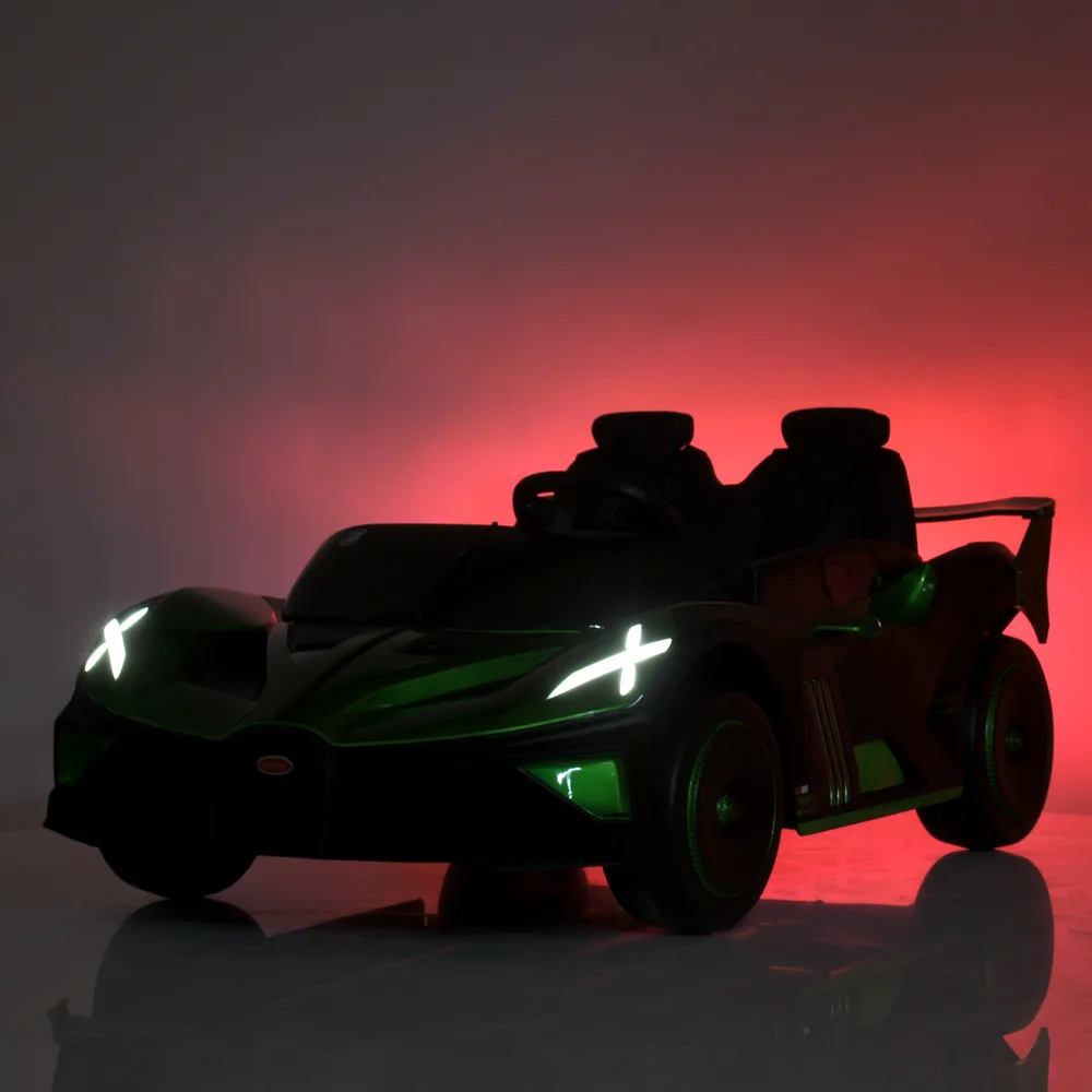 Двомісний дитячий електромобіль створений за зразком справжнього спортивного авто Bugatti. Це не просто іграшка — це мрія кожного малюка, який хоче відчути себе справжнім водієм.