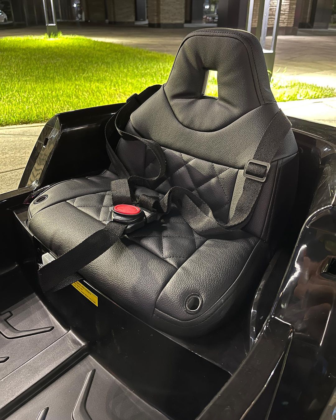 ✔️Сидіння еко шкіра, 3х точкові ремені безпеки, ширина посадкового місця 34 см