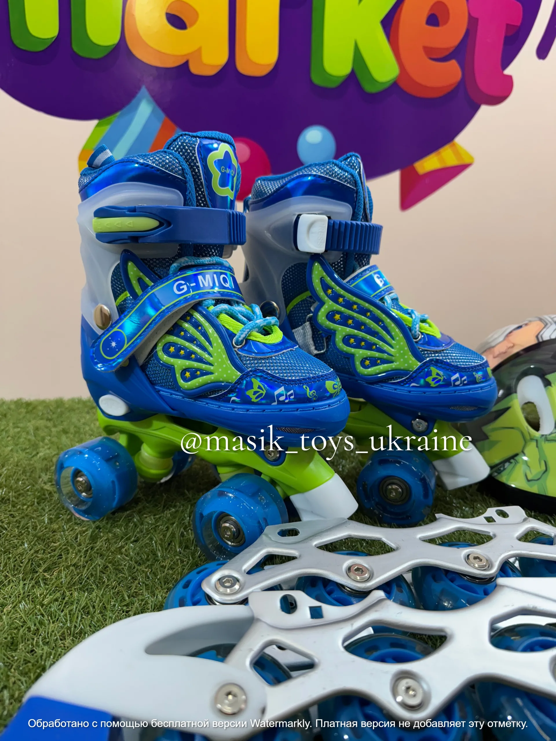 Ролики квади 2в1 розсувні, шолом, захист, розмір S 31-34 Blue
