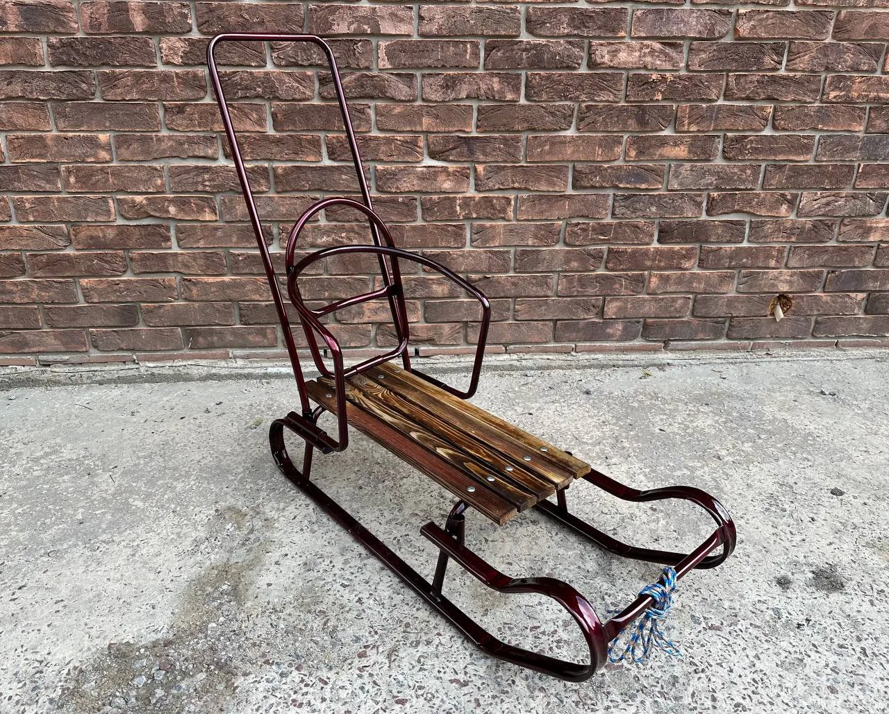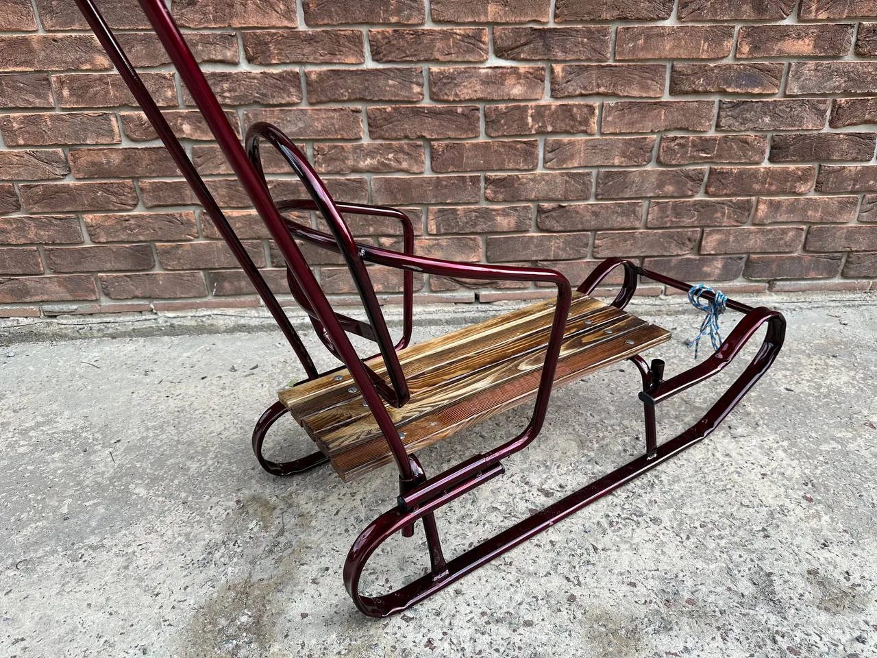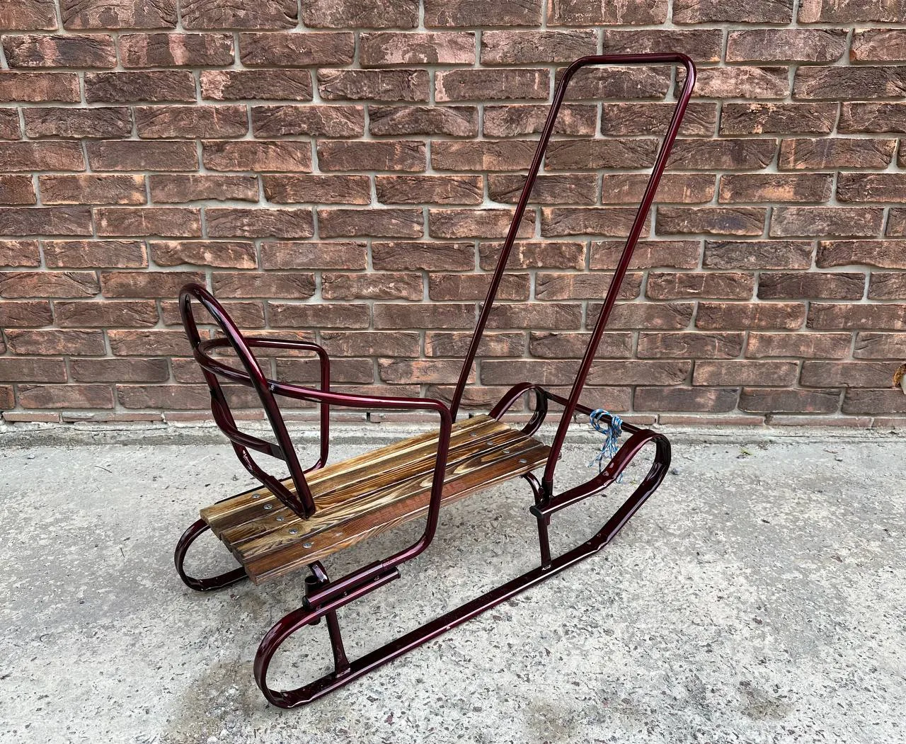 Дитячі санчата "Королівські" із переставною ручкою бордовіДитячі санчата “Королівські” із переставною ручкою бордові