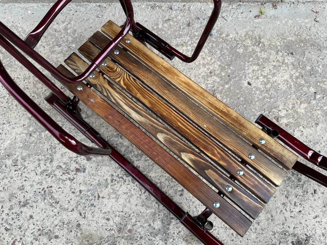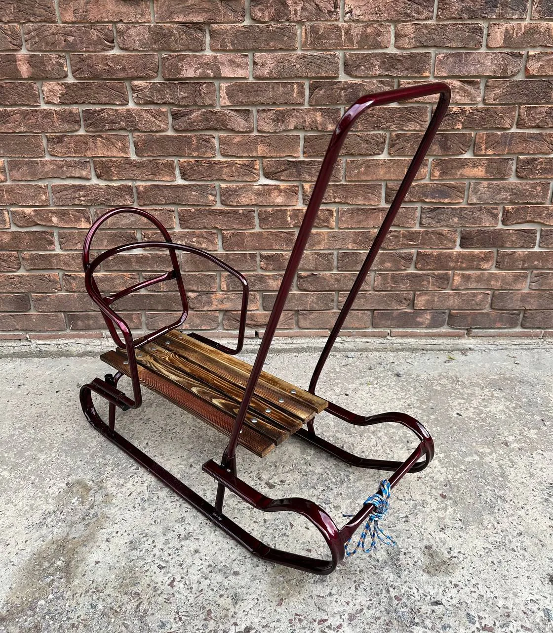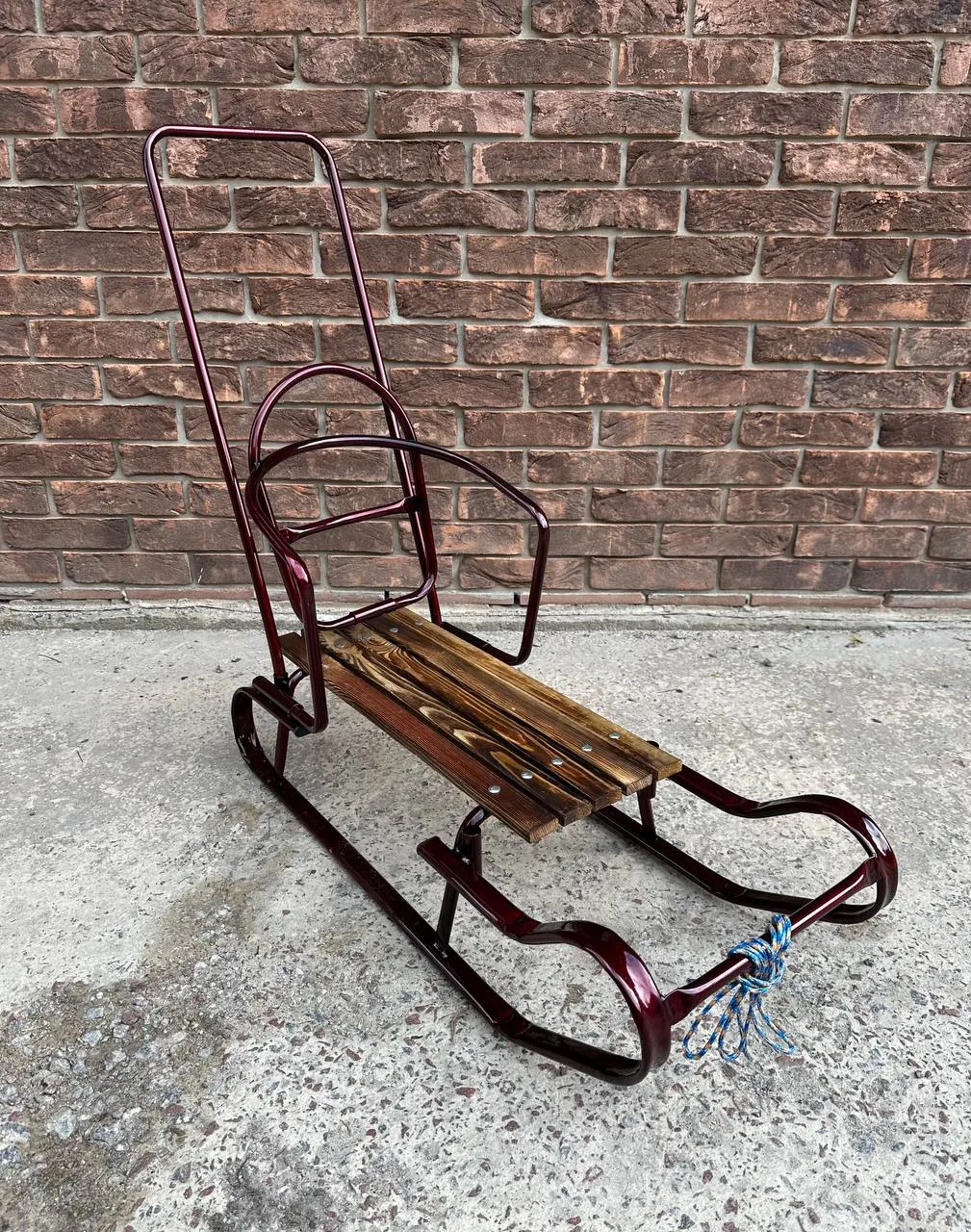 Дитячі санчата "Королівські" із переставною ручкою бордовіДитячі санчата “Королівські” із переставною ручкою бордові