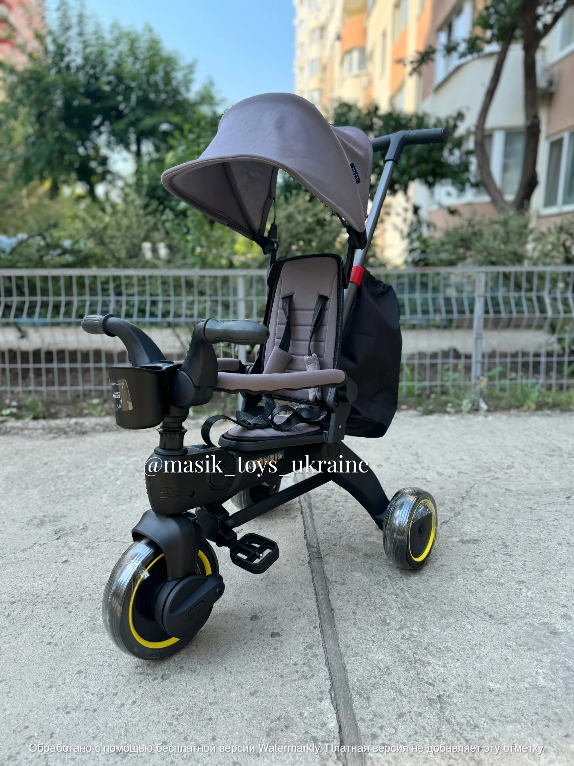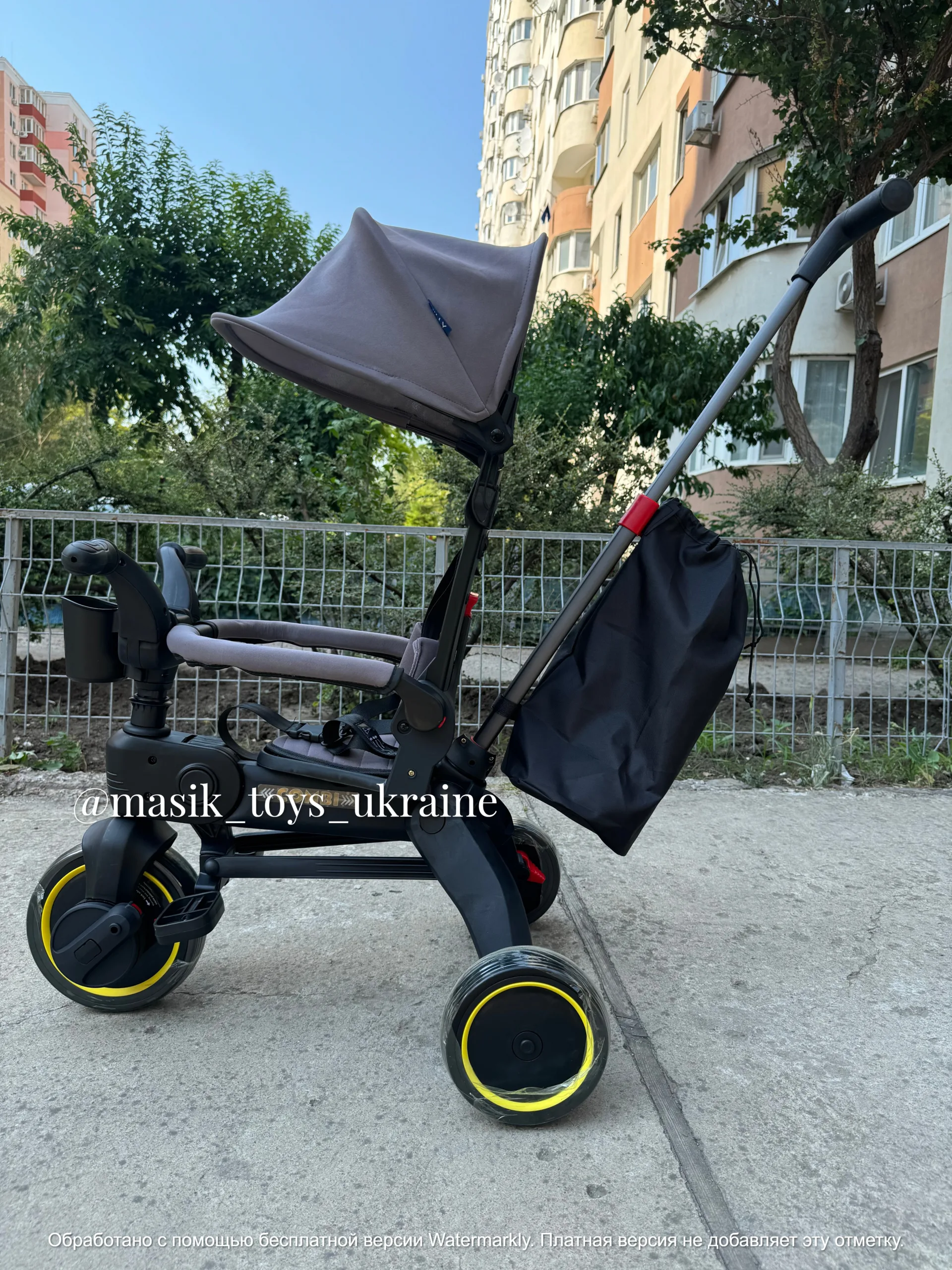 ✔️Міцна металева рама, якісні поліуретанові колеса, переднє колесо 20 см, задні 16 см