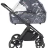 Клапани оснащені магнітними фіксаторами положень, що дозволяє регулювати інтенсивність повітряного потоку. У прохолодну пору вентиляційні віконця повністю закриваються. Шасі компактно складається, зберігаючи вертикальне положення. У комплект входить універсальний дощовик і антимоскітна сітка. Регулювання висоти батьківської ручки – телескопічне. Компактне і швидке складання прогулянкового блоку разом з рамою зручне як для зберігання, так і транспортування коляски в багажнику авто.