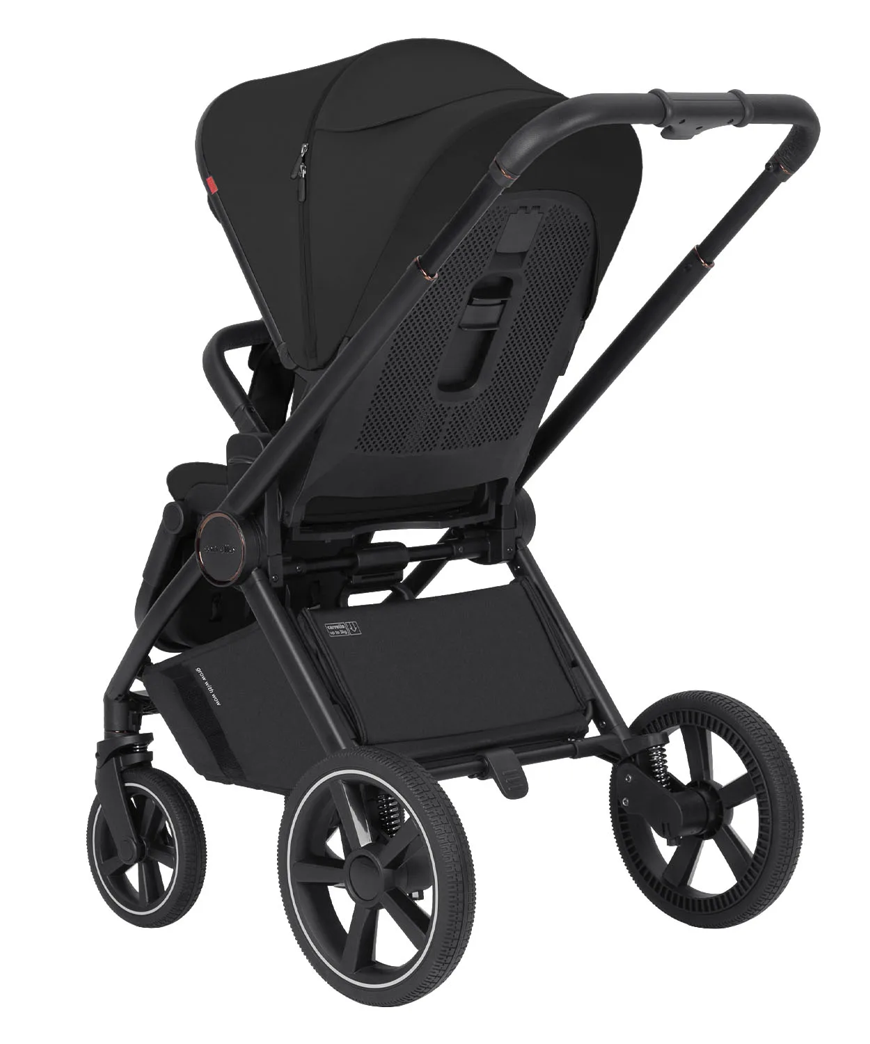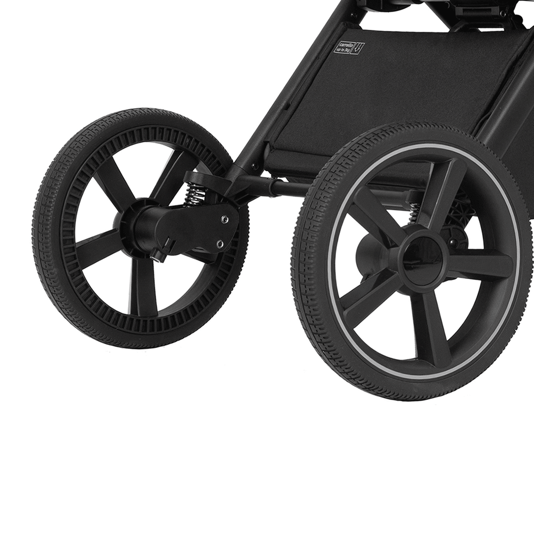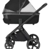 Клапани оснащені магнітними фіксаторами положень, що дозволяє регулювати інтенсивність повітряного потоку. У прохолодну пору вентиляційні віконця повністю закриваються. Шасі компактно складається, зберігаючи вертикальне положення. У комплект входить універсальний дощовик і антимоскітна сітка. Регулювання висоти батьківської ручки – телескопічне. Компактне і швидке складання прогулянкового блоку разом з рамою зручне як для зберігання, так і транспортування коляски в багажнику авто.