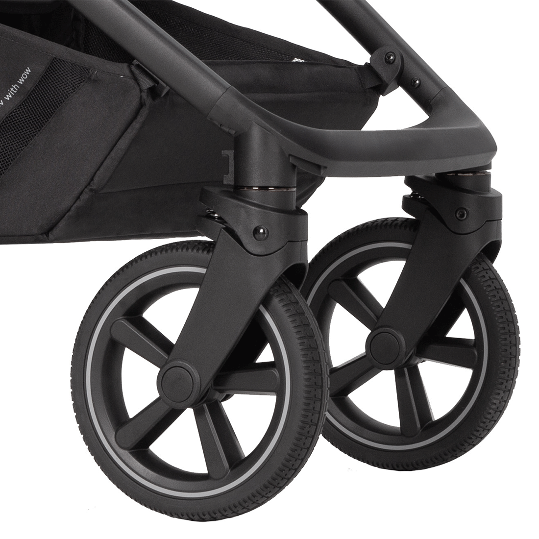 Поворотні на 360° передні колеса роблять коляску маневренішою, а прогулянки ще комфортнішими. Діаметр коліс – передні 20 см; задні 29 см
