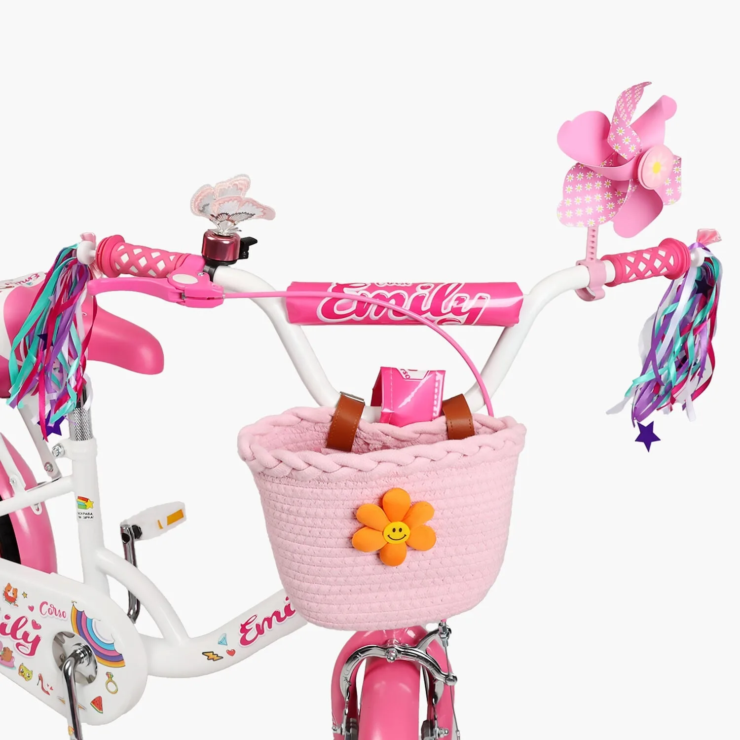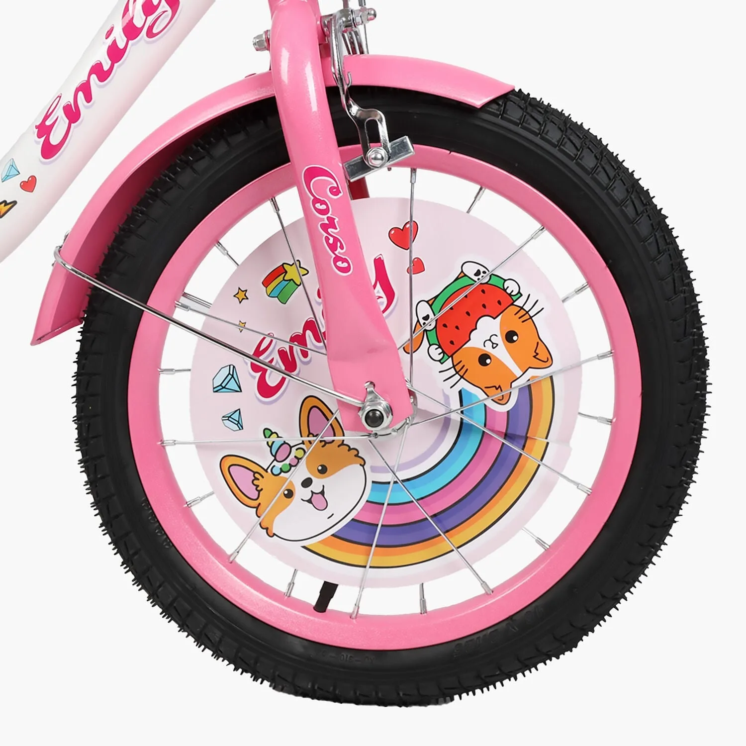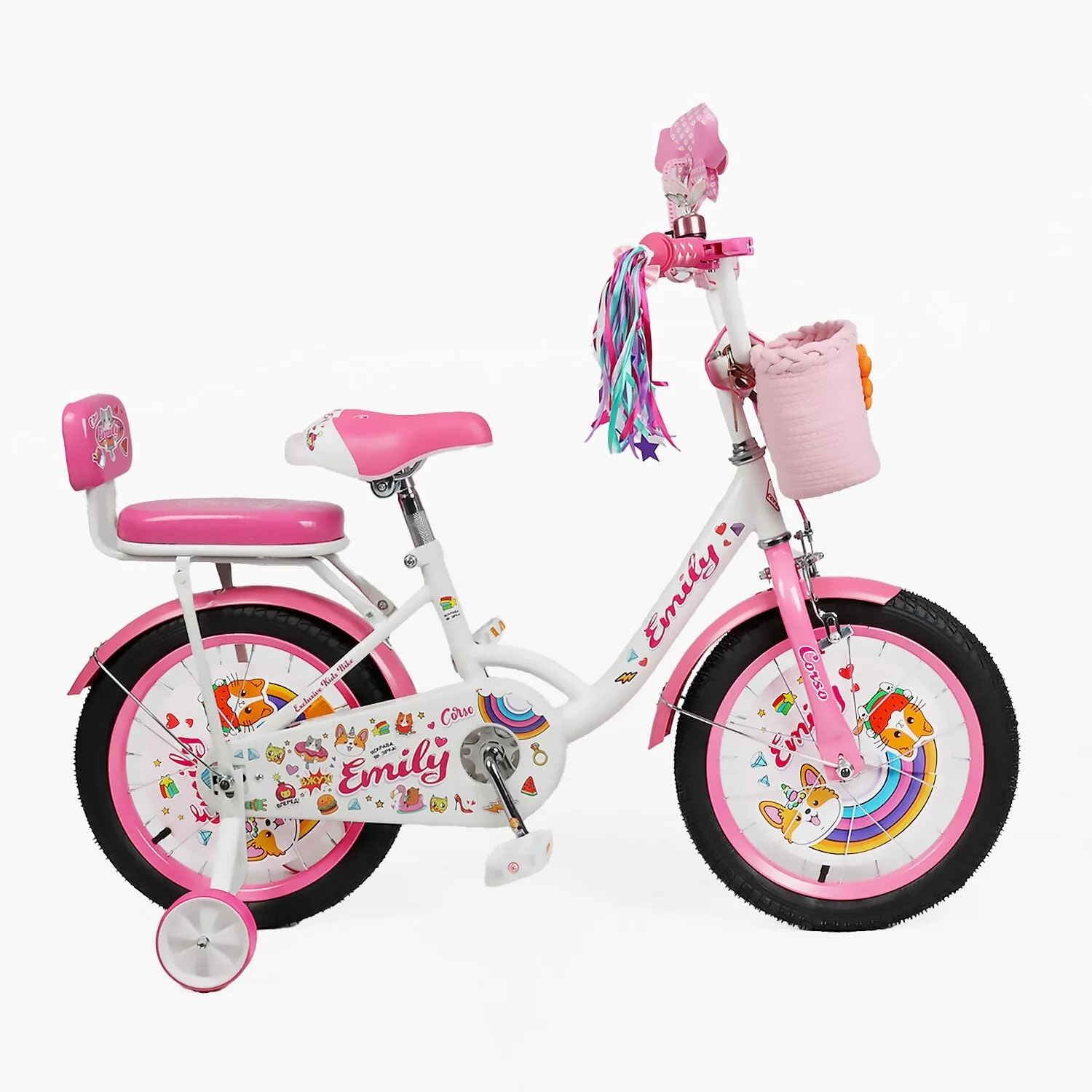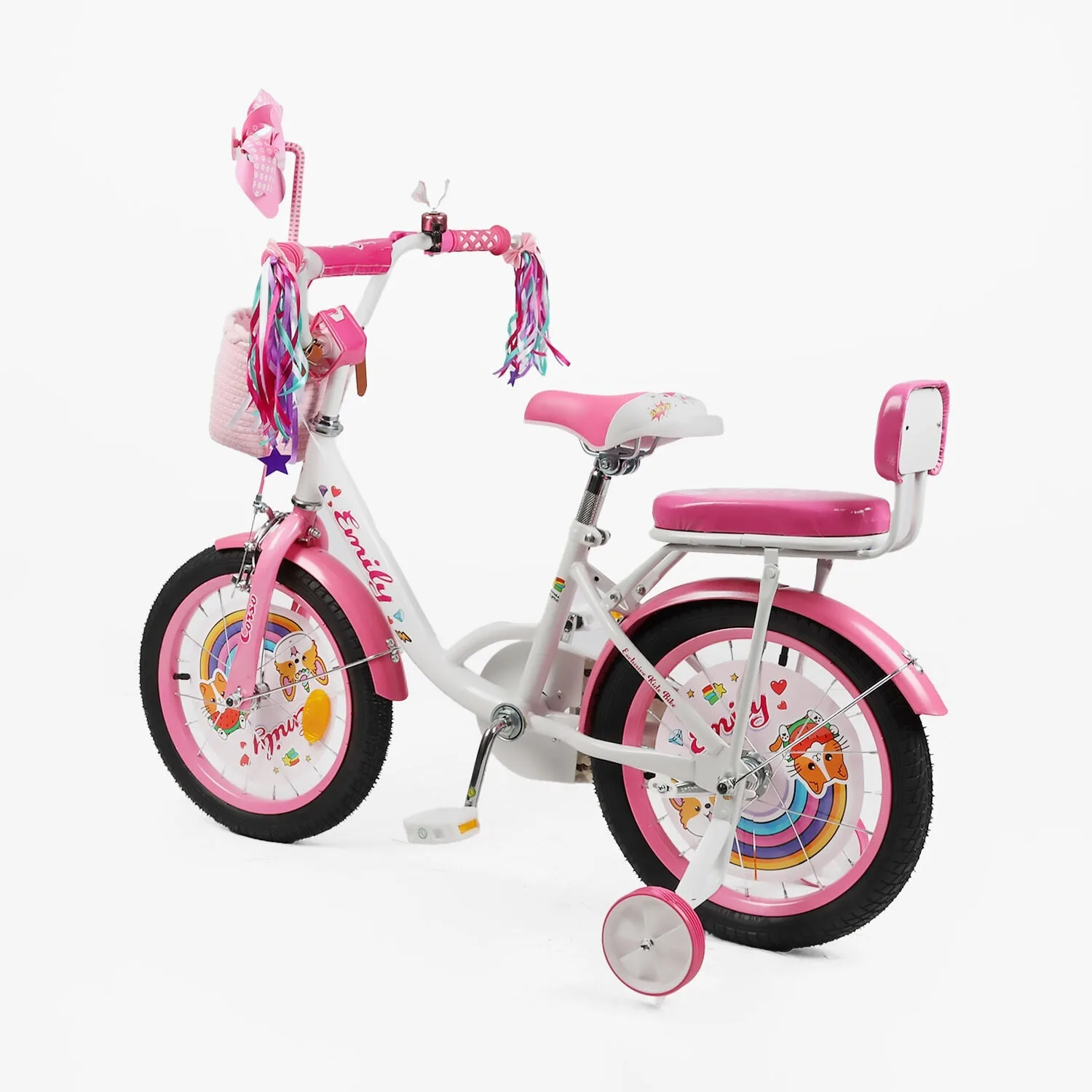 Велосипед 16″ Corso Emily кошик, прикраси, ручне гальмо, дзвіночок білий