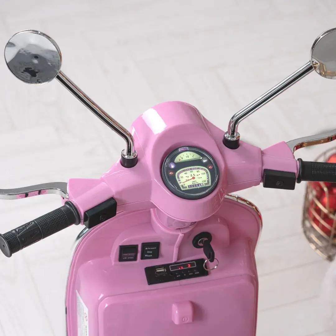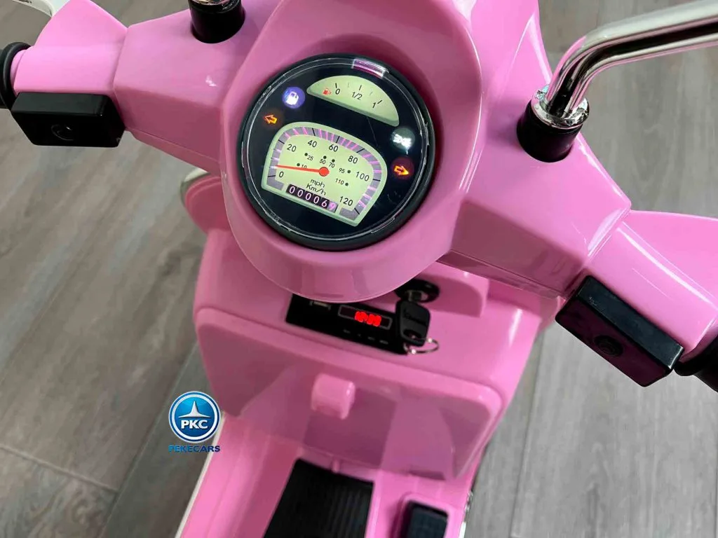 Електроскутер Vespa з багажником, МР3, рожевий M 4939EL-8Електроскутер Vespa з багажником, МР3, рожевий M 4939EL-8